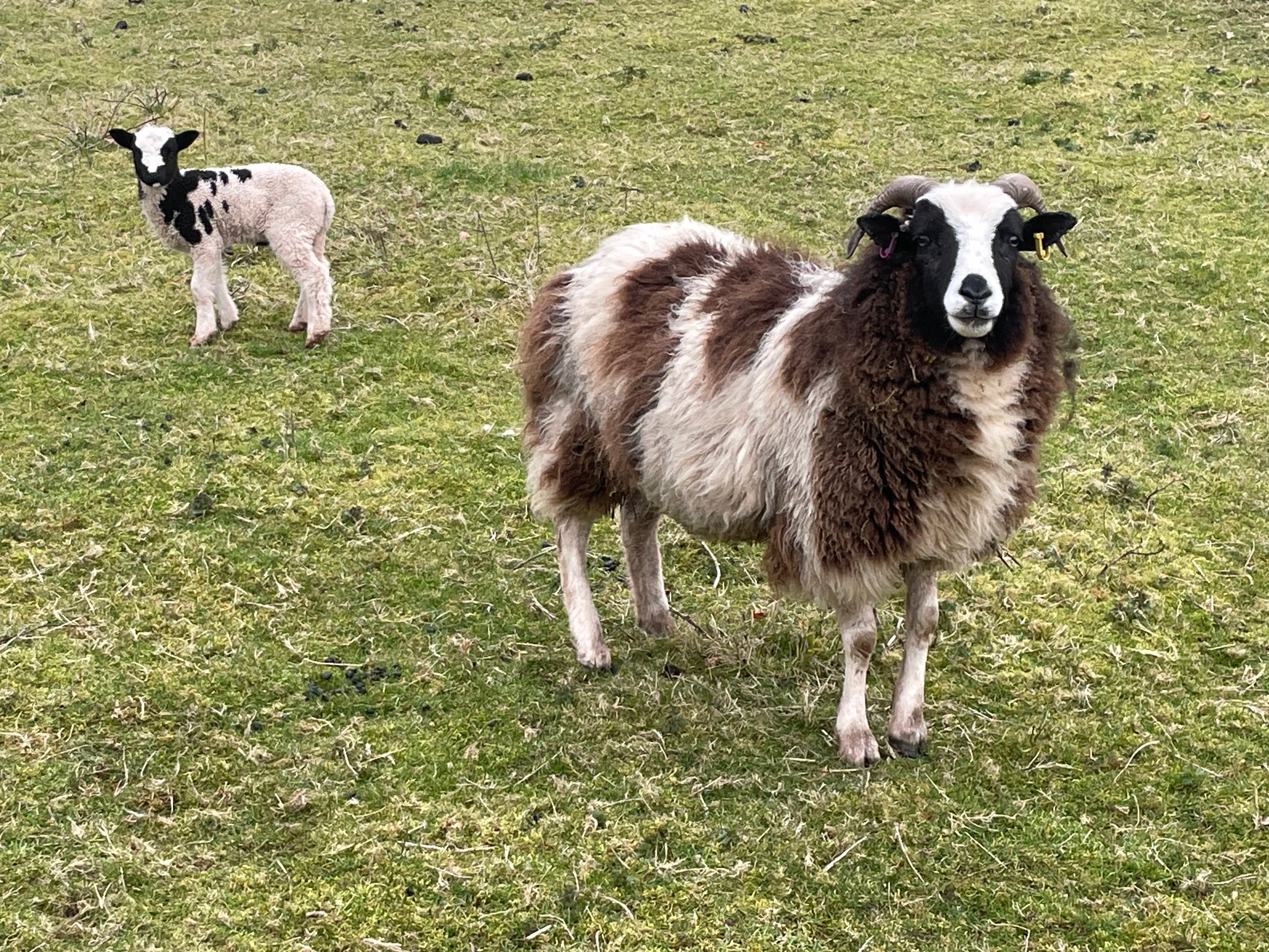 whole fleece rugs from out flock of Jacob x Black Mountain sheep...