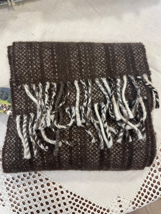 Woven woollen scarf Brown a Hufen Dwbl Streipen