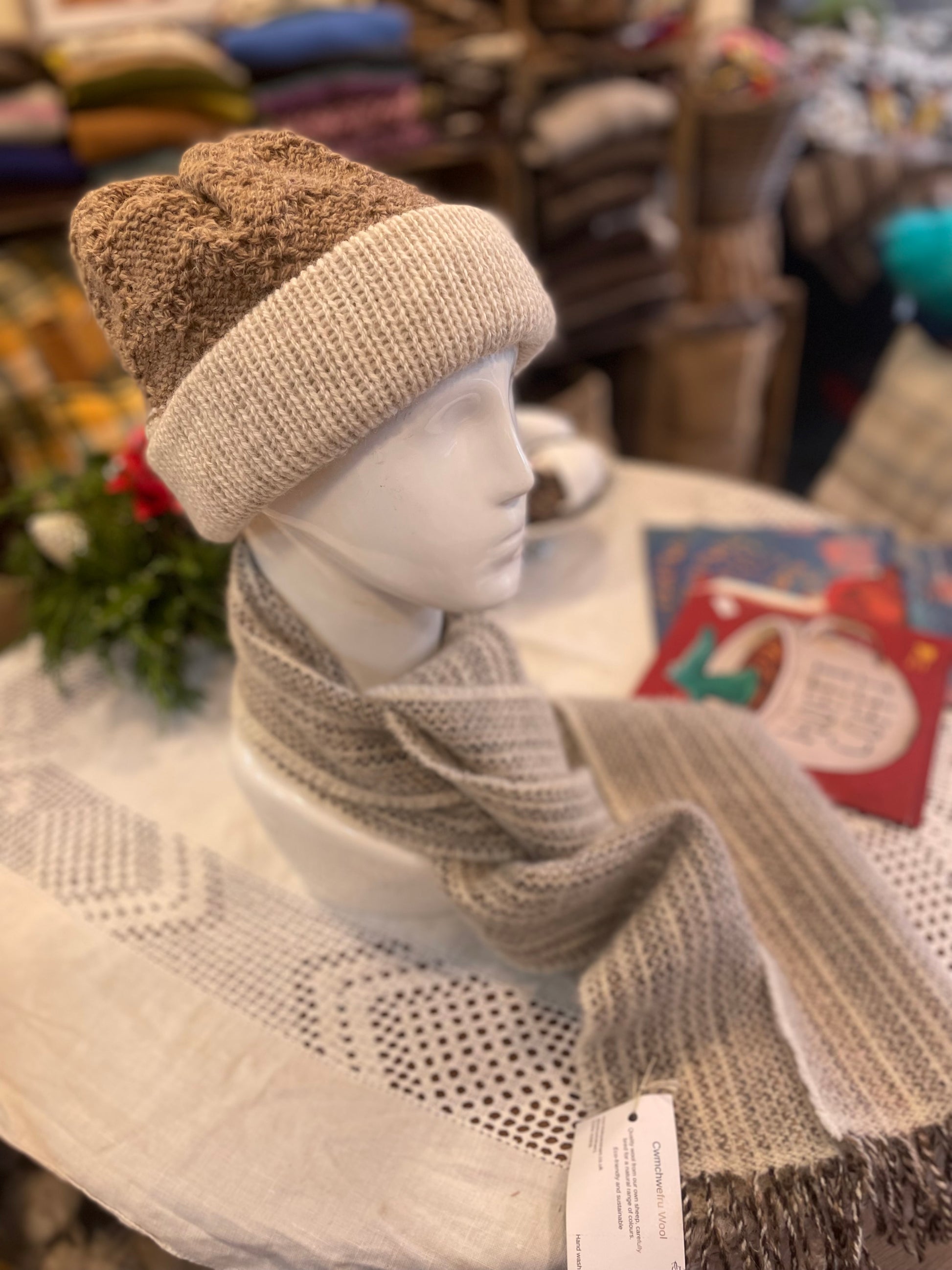 Their sheep have been carefully bred for over 30 years to provide high-quality wool in a variety of natural colours. With no need for dyeing, the wool is very eco-friendly. It only travels to West Wales to be spun, so has very low “fibre miles” – even more eco-friendly.