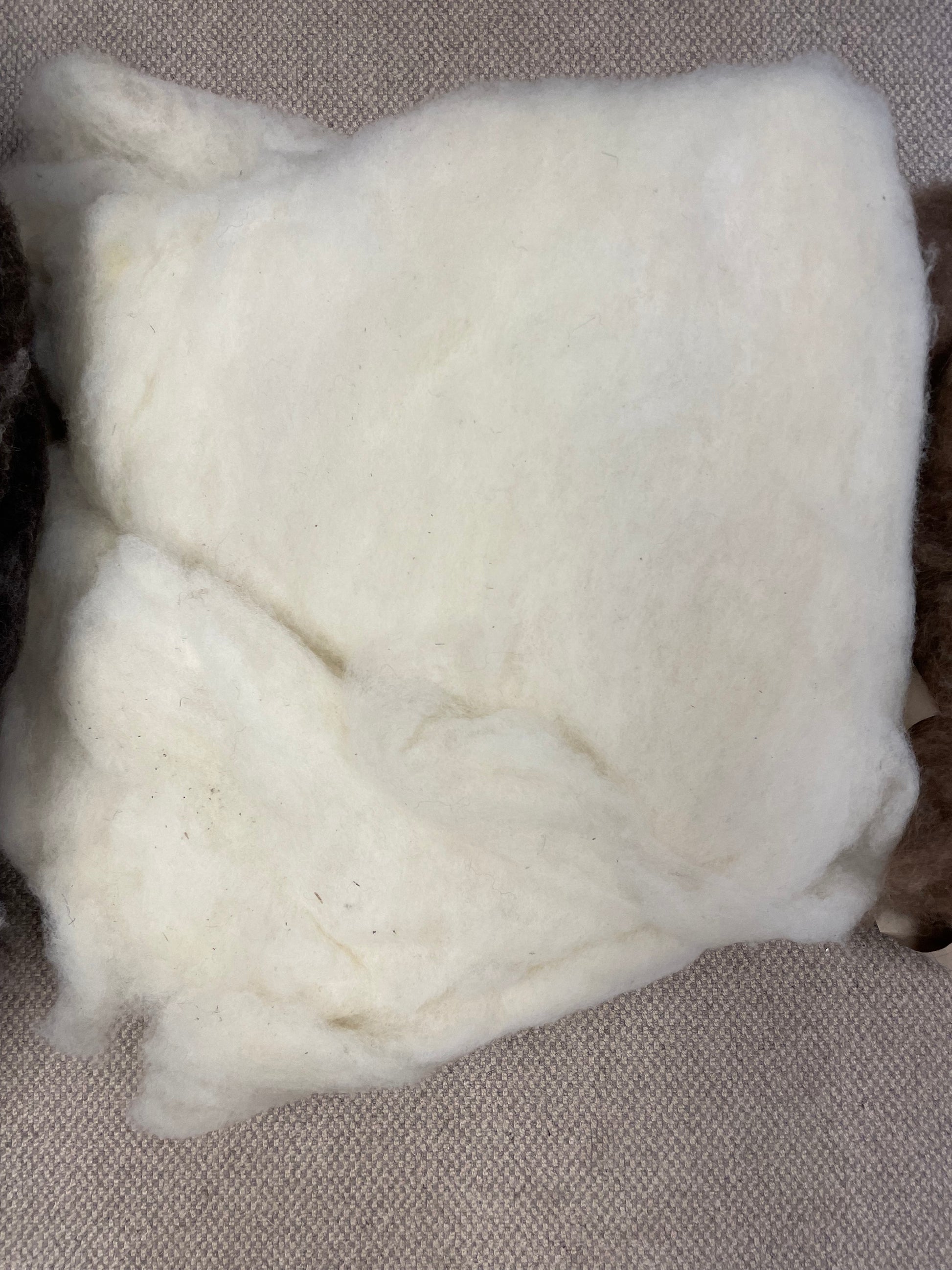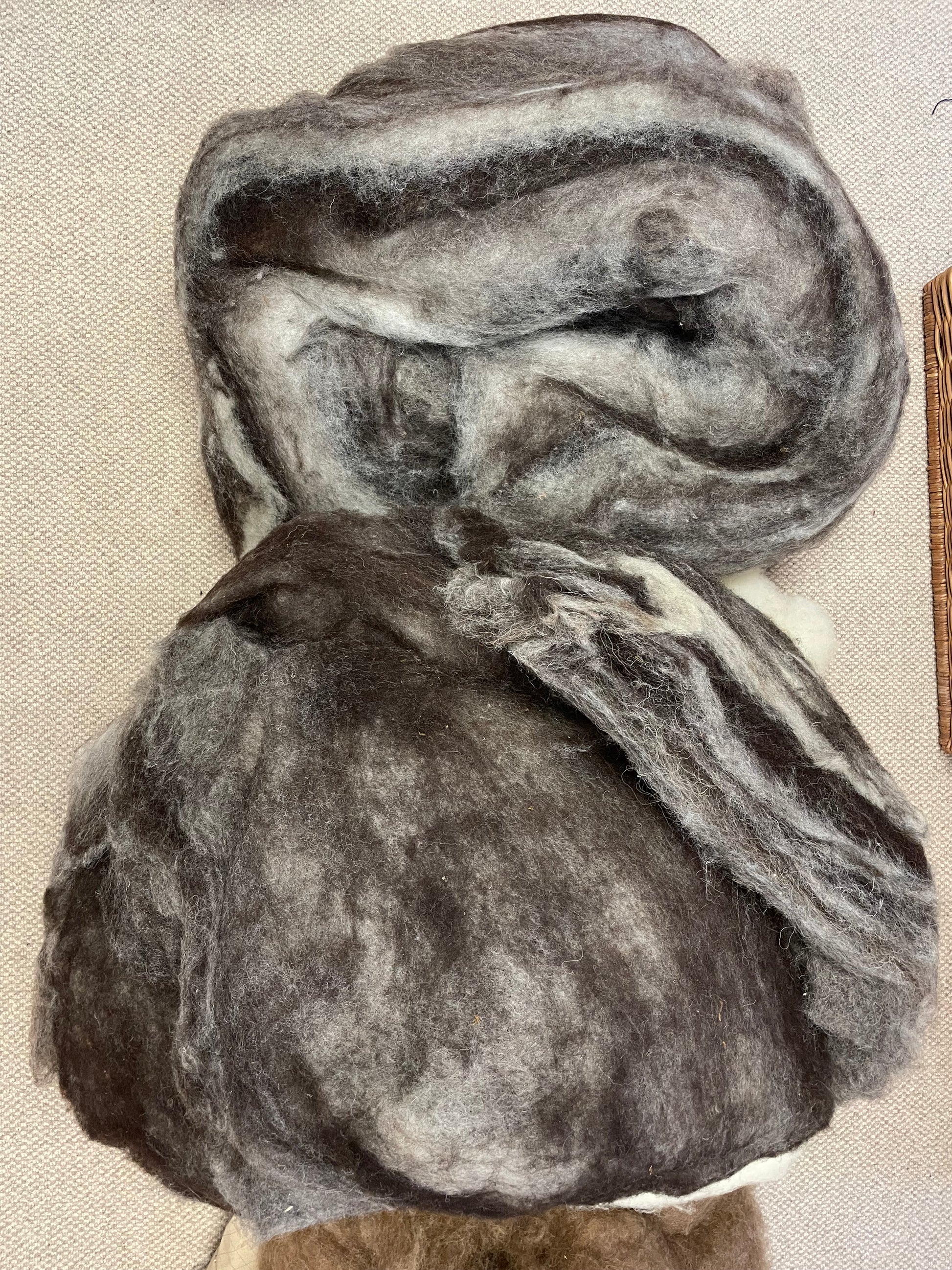 These rovings have been processed and carded in a small mill. Every endeavor has been taken to remove all particles, however, it is possible that small specks of VM may still be present.