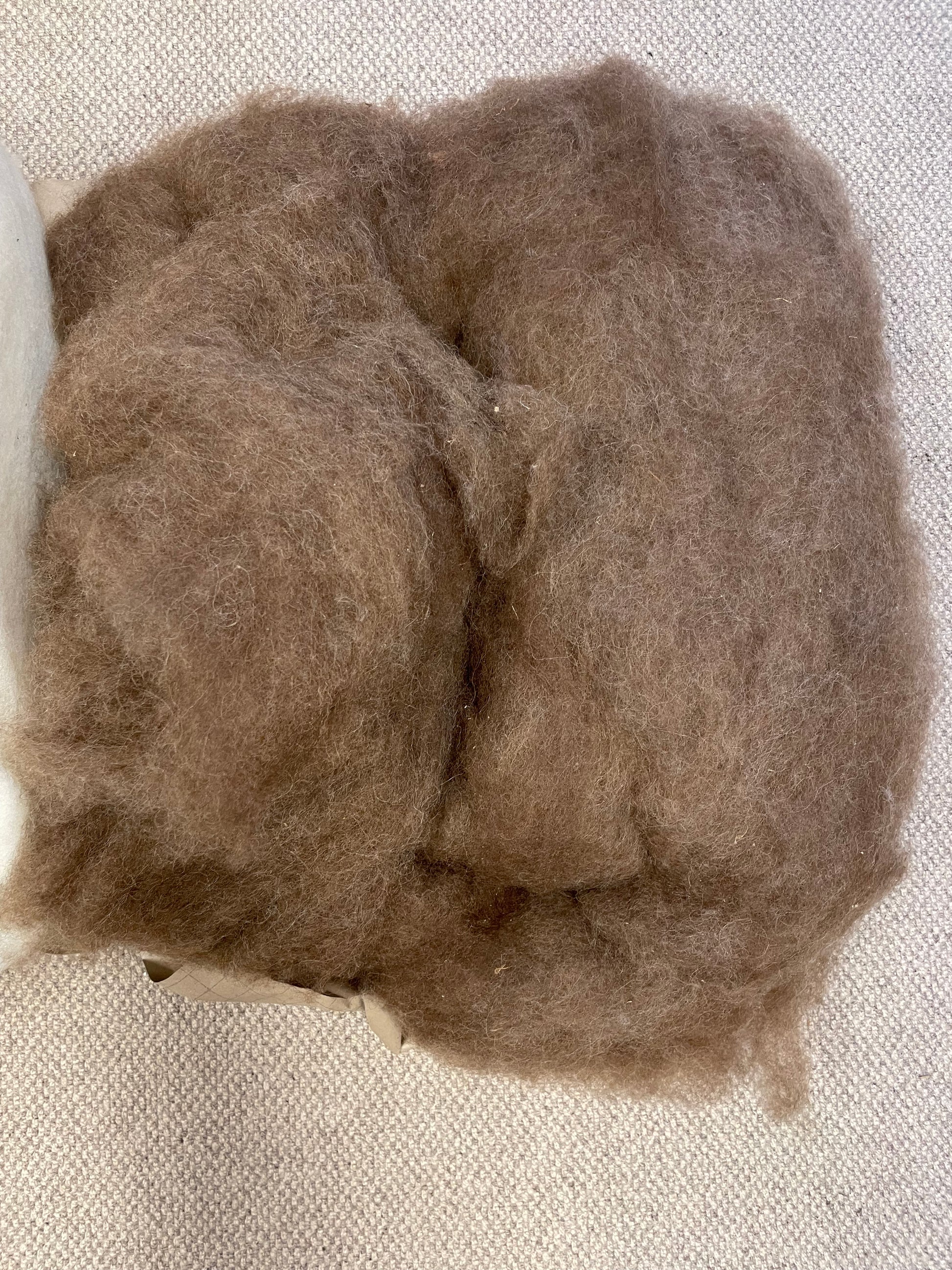 Black Welsh Mountain fibre is short, thick and densely stapled and is typically 24‒34 microns so it is a sturdy wool, but also feels supple in the hand, and of particular interest to hand spinners and weavers due to its natural chocolate brown to black colouration.