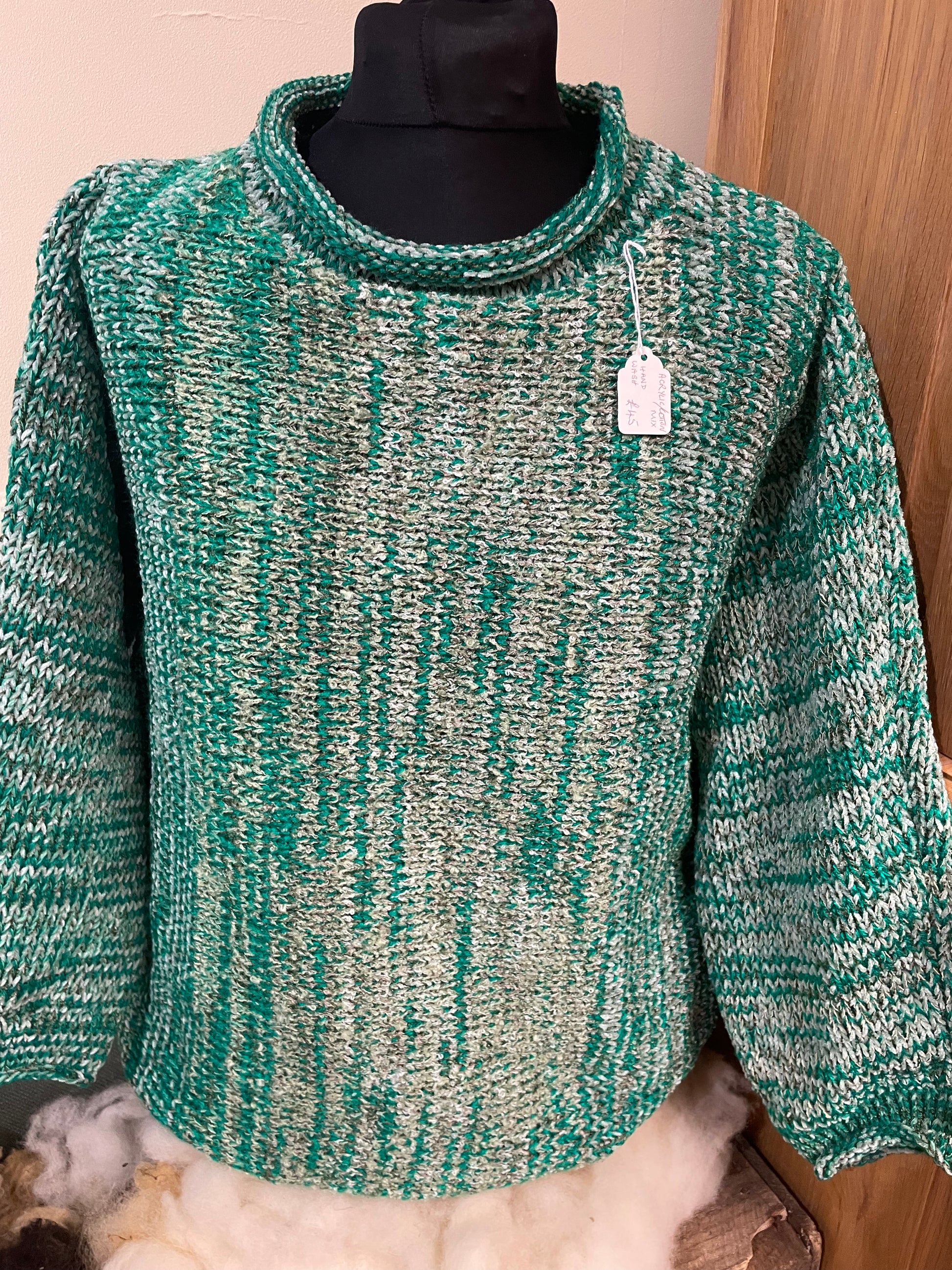 Ladies Green Acrylic/Cotton mix jumper hand wash only. Please email for measurements.