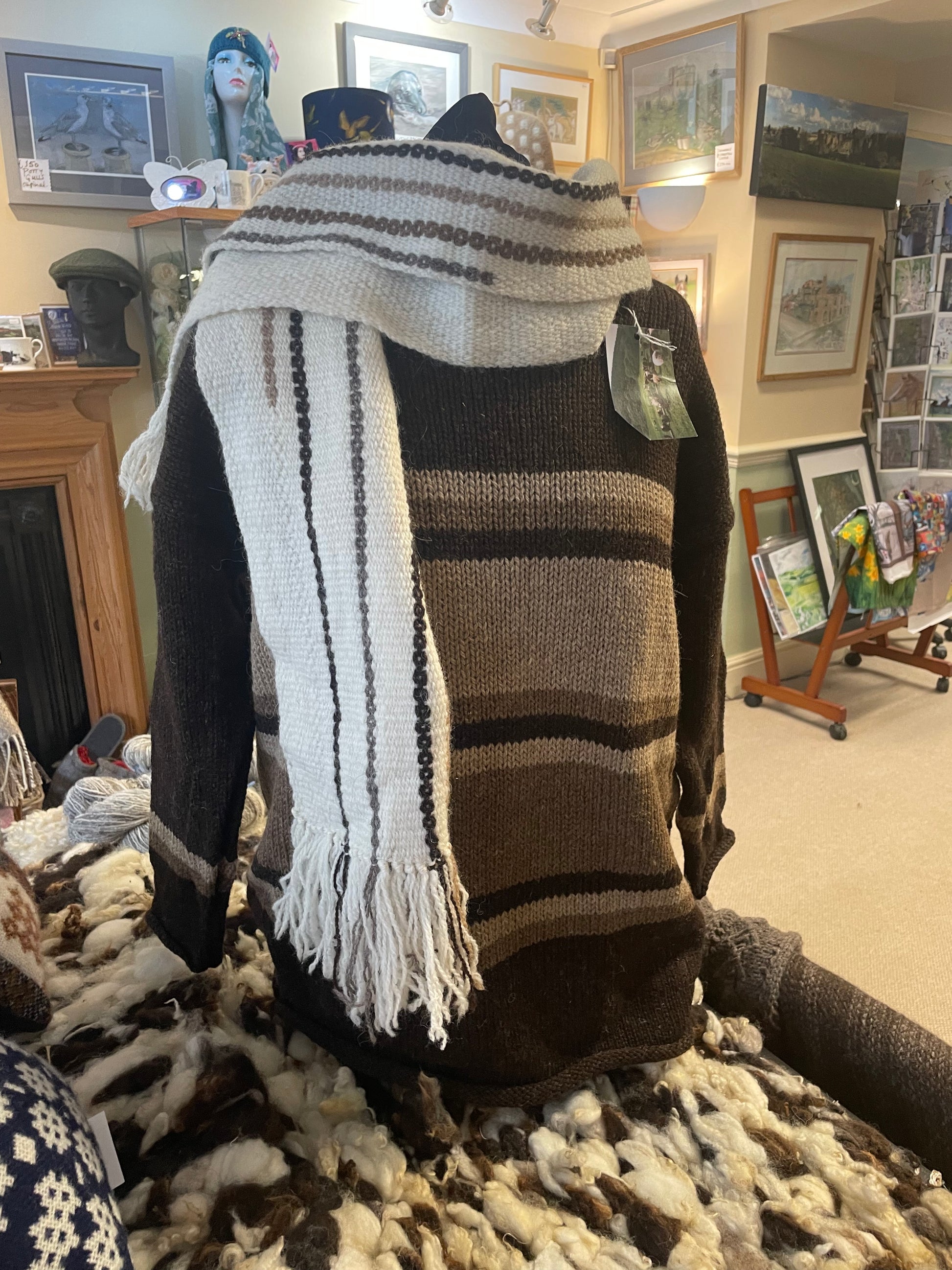 Long before she had the sheep, Lesley was a knitwear designer using a knitting machine. She now specialises in using her own wool and various products are available from the sheep as well as the knitwear.