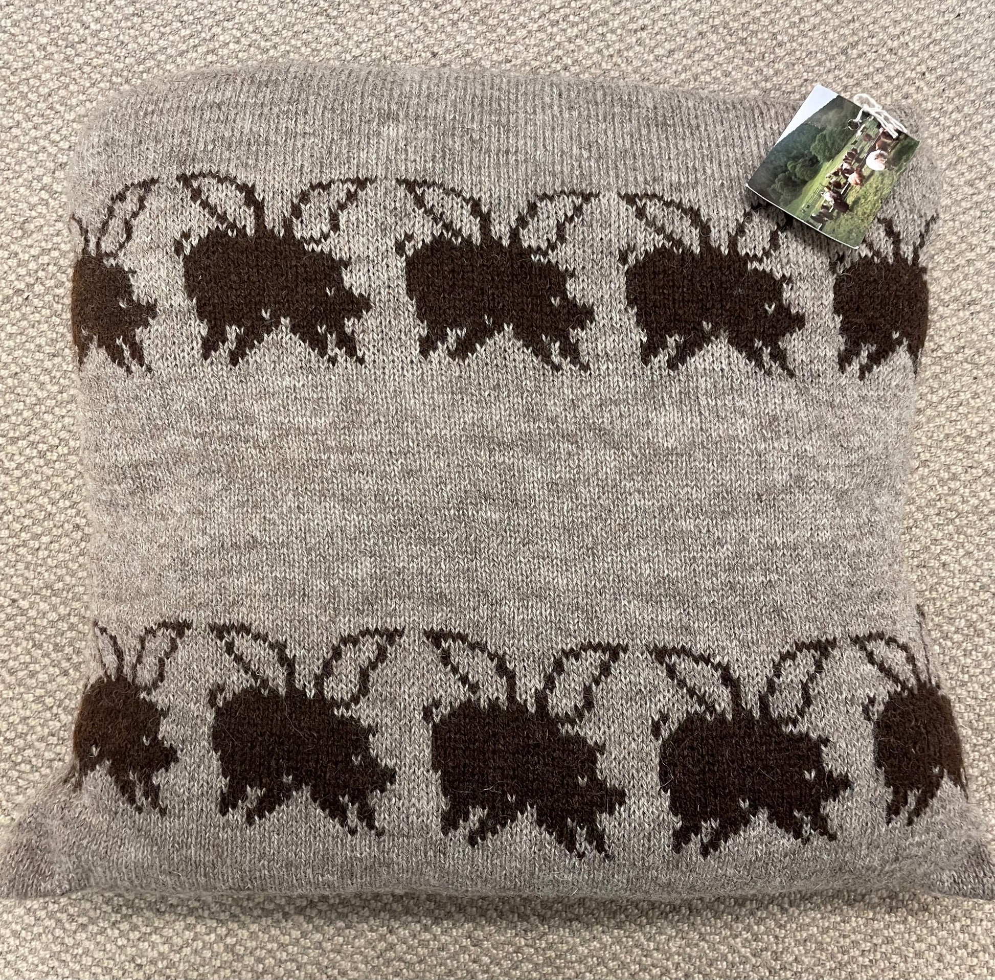 Woollen cushion designed by Lesley Wickham Cwmchwefru Wool, made with quality wool from her own sheep, carefully bred for a natural range of colours.
