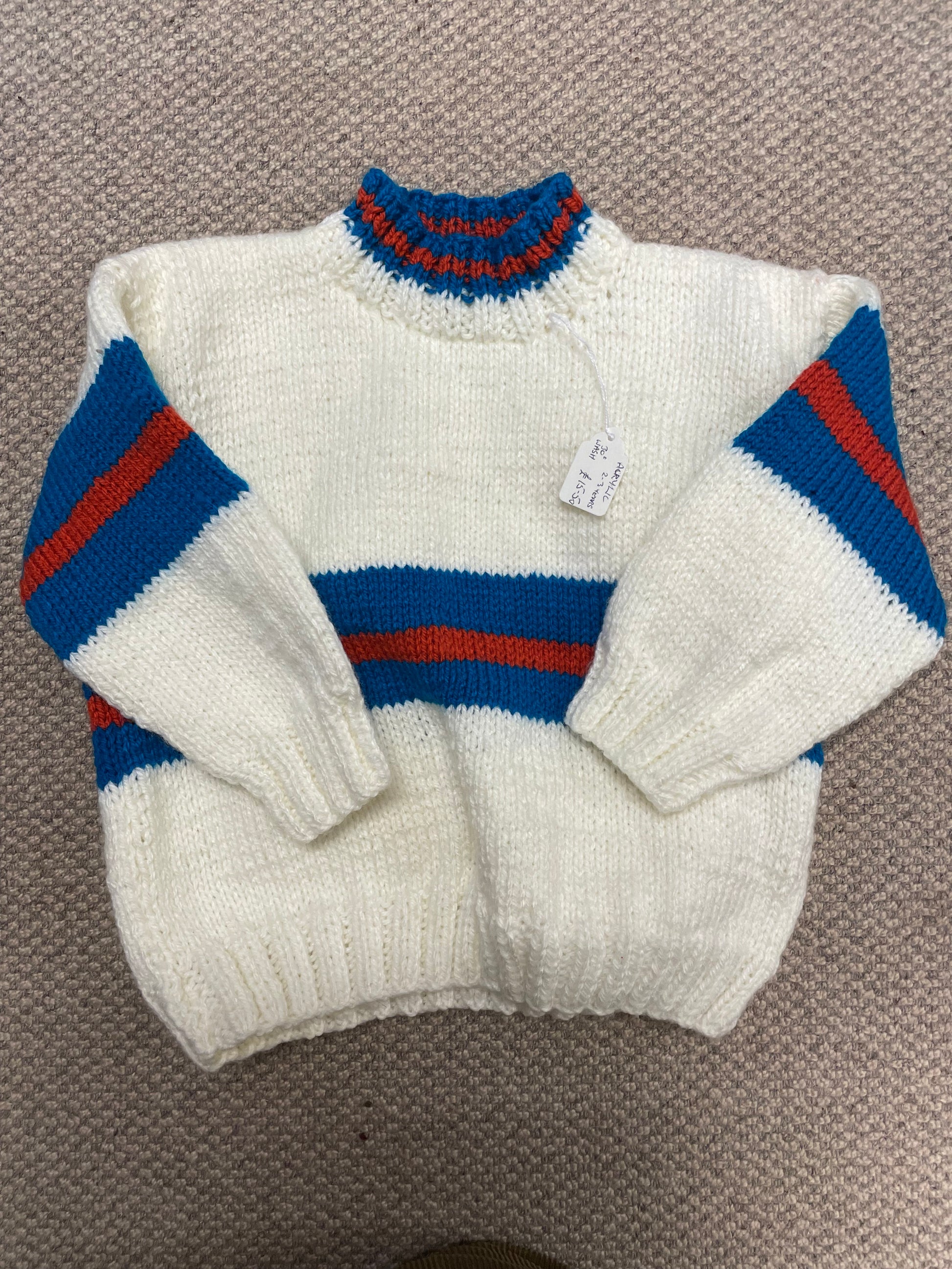 Cream and Teal blue knitted children’s jumper age 2-3 years