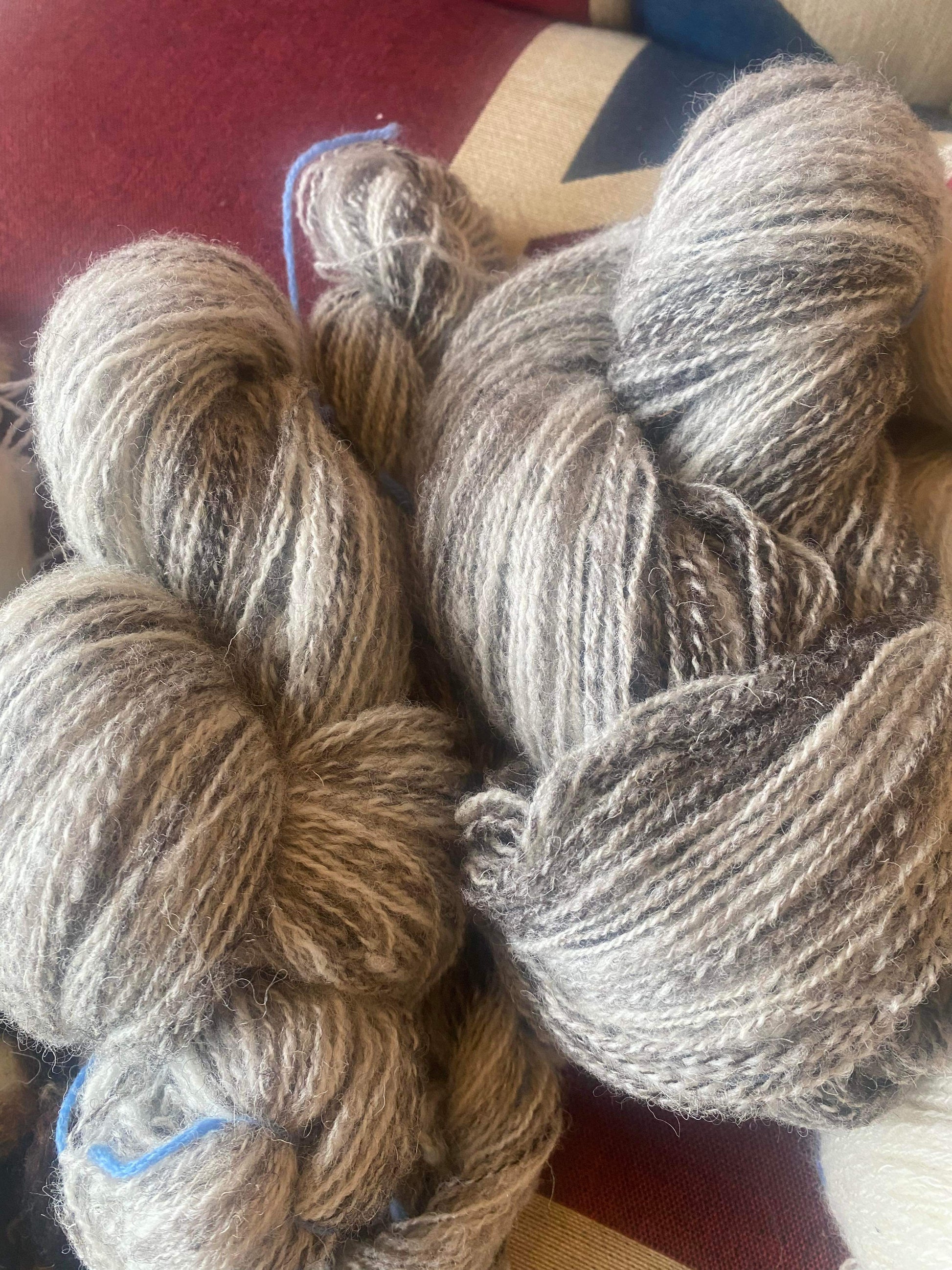 Hand spun Jacob Wool from our flock at Gaerllwyd Monmouthshire