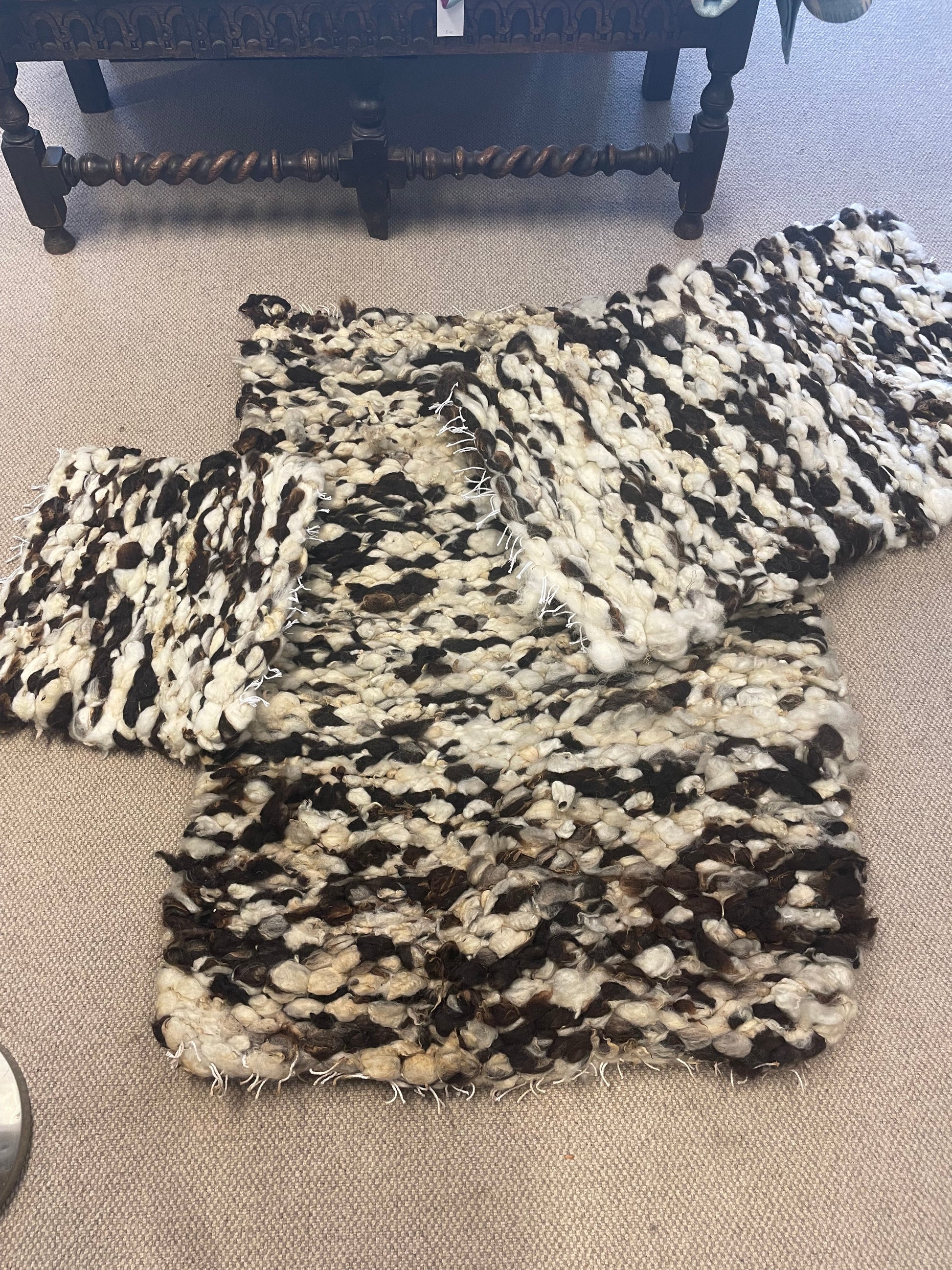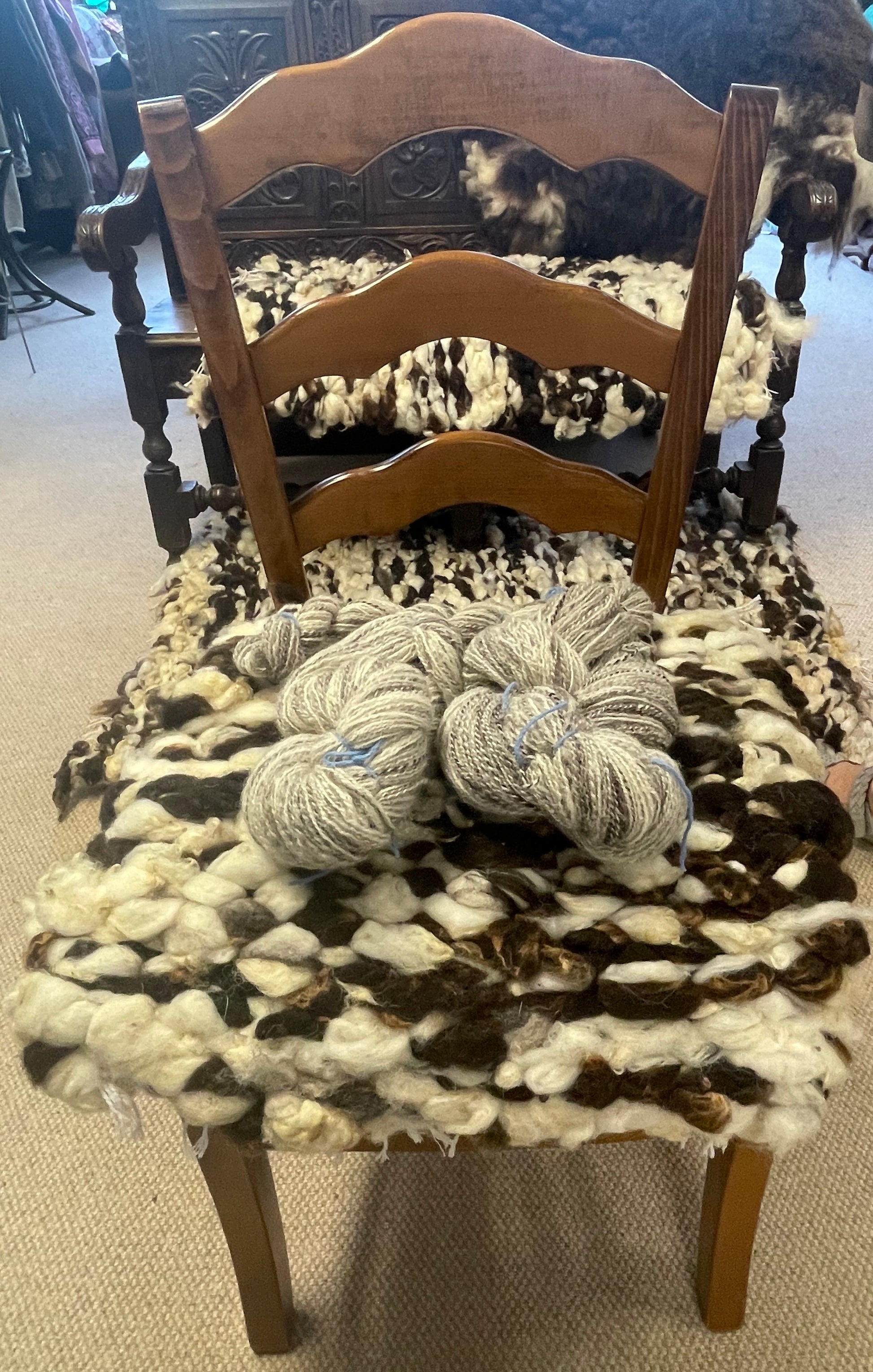 These Peg Loom Seat Pads are made with our own Jacob and Black Welsh Mountain fleeces sheared this April from our flock in Gaerllwyd Monmouthshire.