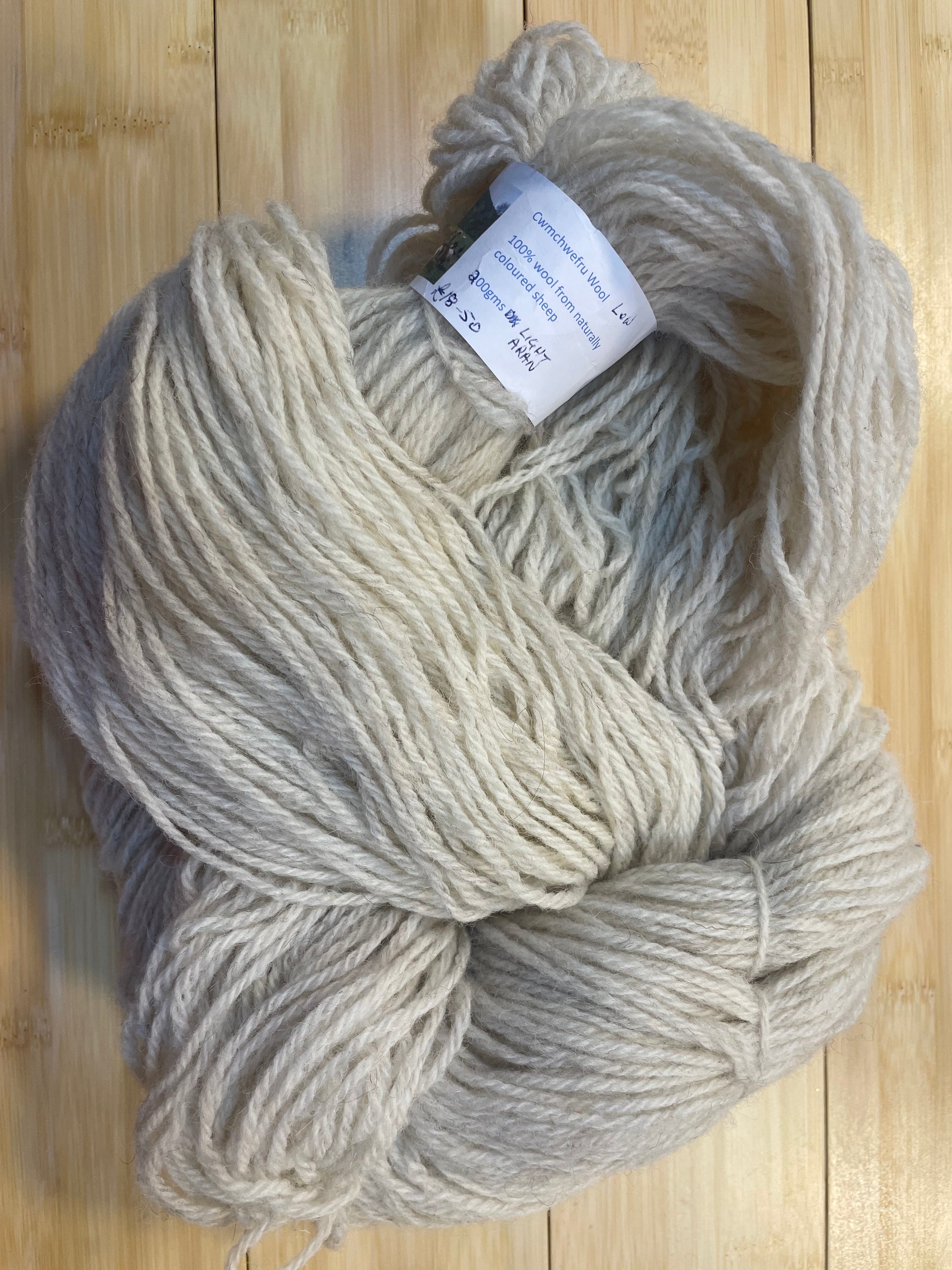 Light Aran 200gs 100% natural wool mill spun yarn from Cwmchwefru Wool Lesley Wickham