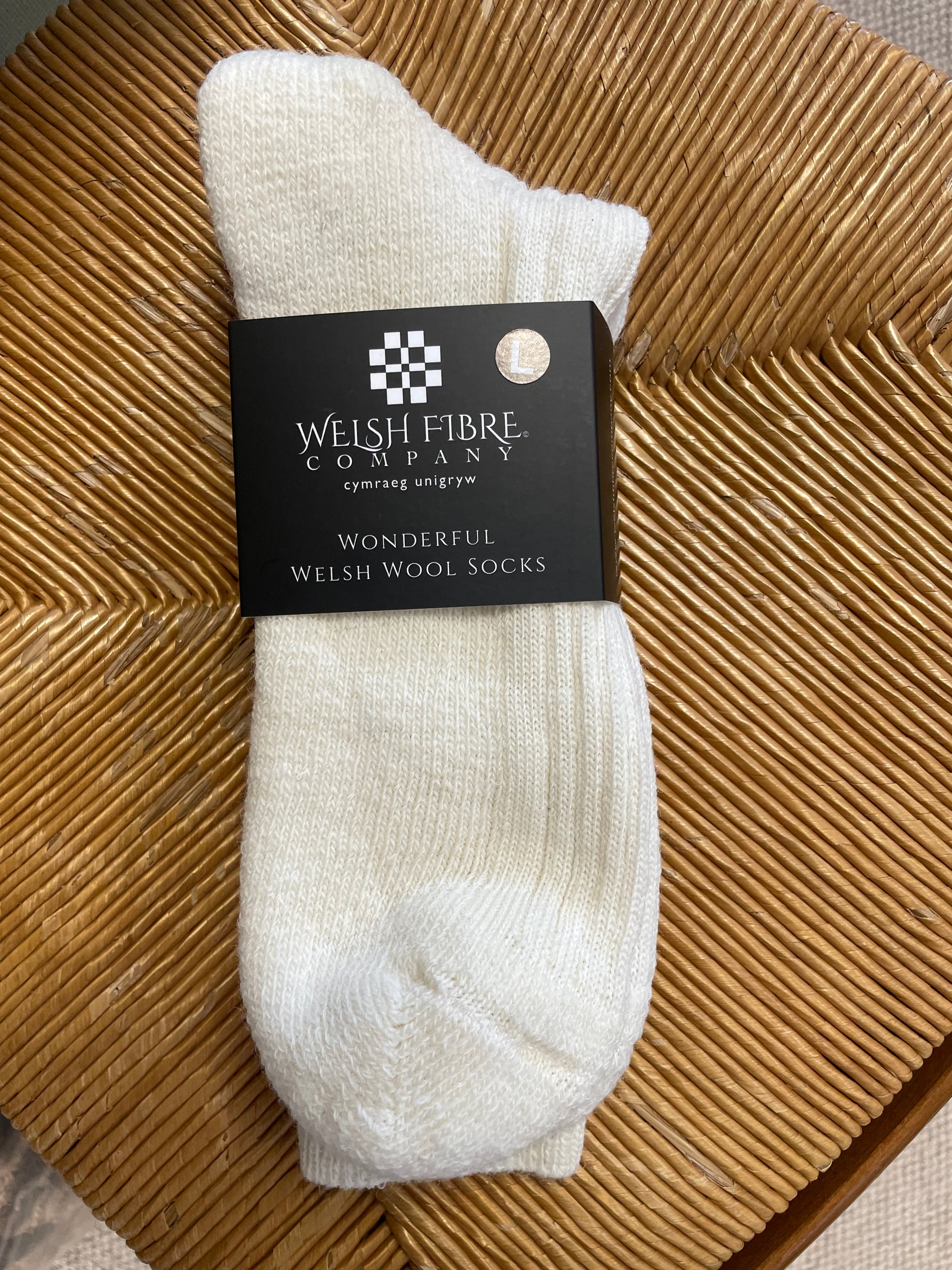A true passion for Welsh wool led the Welsh Fibre Company to design and produce these amazing "Uniquely" Welsh wool socks. The wool fibre used to make these socks originates from Welsh wool sheep breeds and wherever possible from local sheep farms in Wales where it is fully traced from Farm to Feet. The fibre was carefully sorted and skirted to ensure only the best sock yarn is spun to exacting specifications to bring you beautifully knitted socks with all the wonderful properties of Welsh wool keeping your feet Snug, Warm and Dry every day.