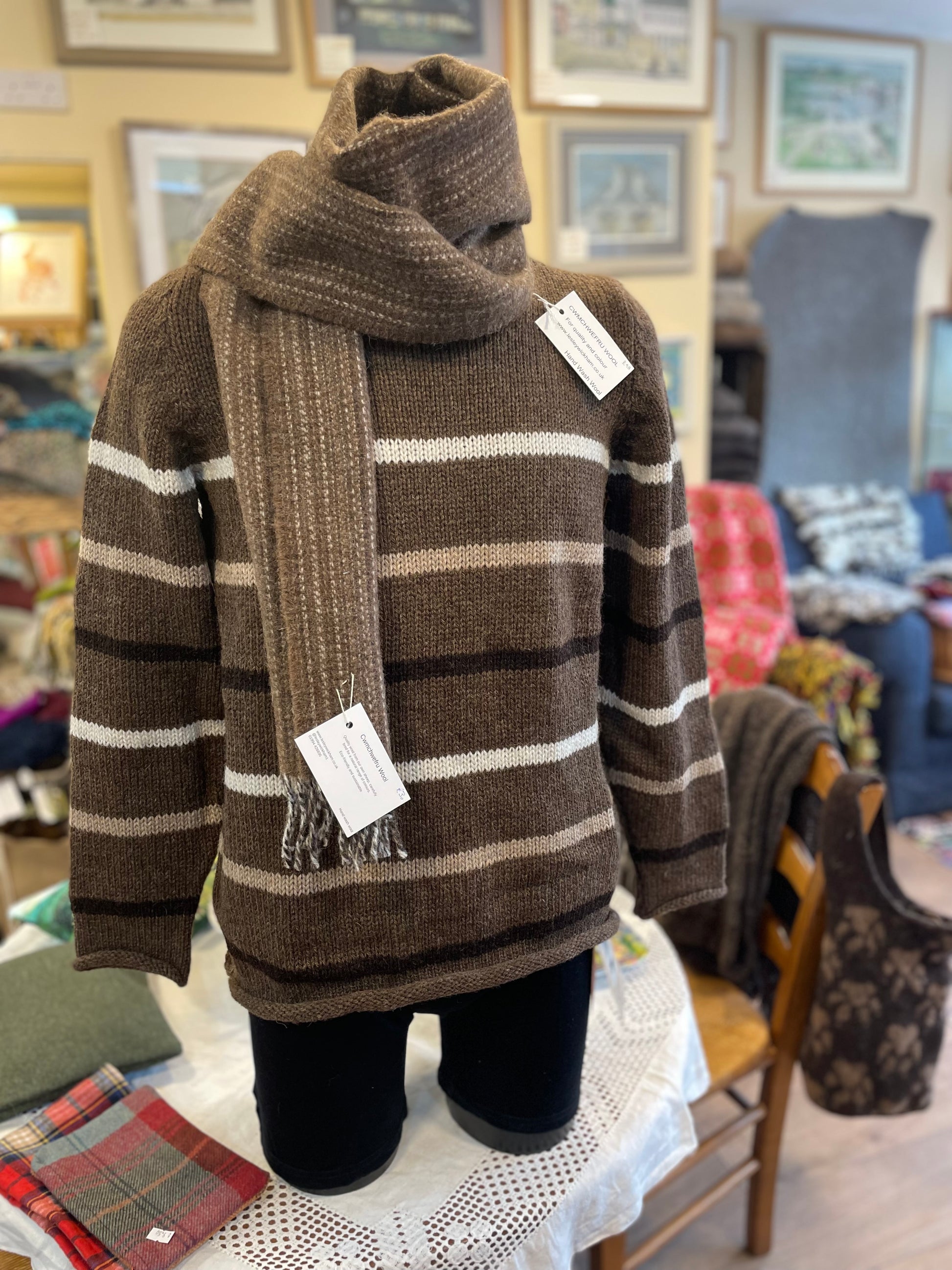 Long before she had the sheep, Lesley was a knitwear designer using a knitting machine. She now specialises in using her own wool and various products are available from the sheep as well as the knitwear.