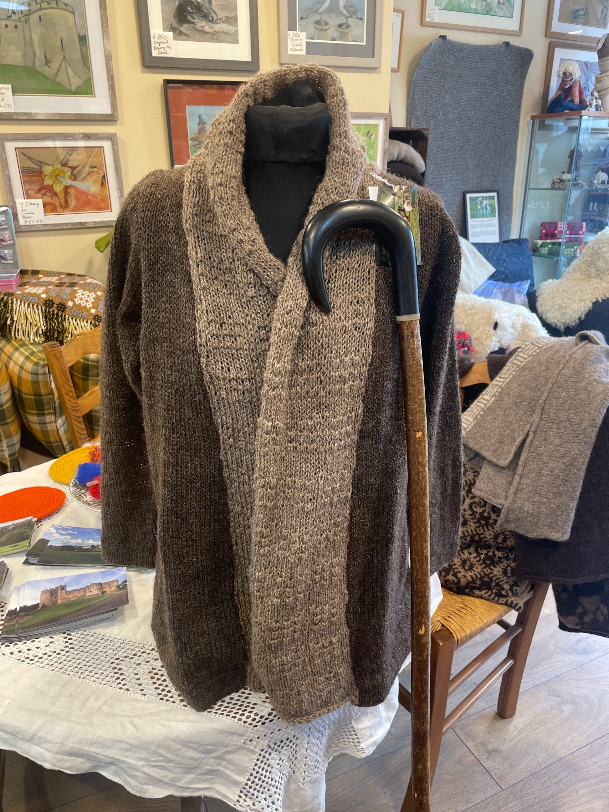 Naturally coloured 100% brown and beige wool Cardigan. Colours are derived from the natural fleece.