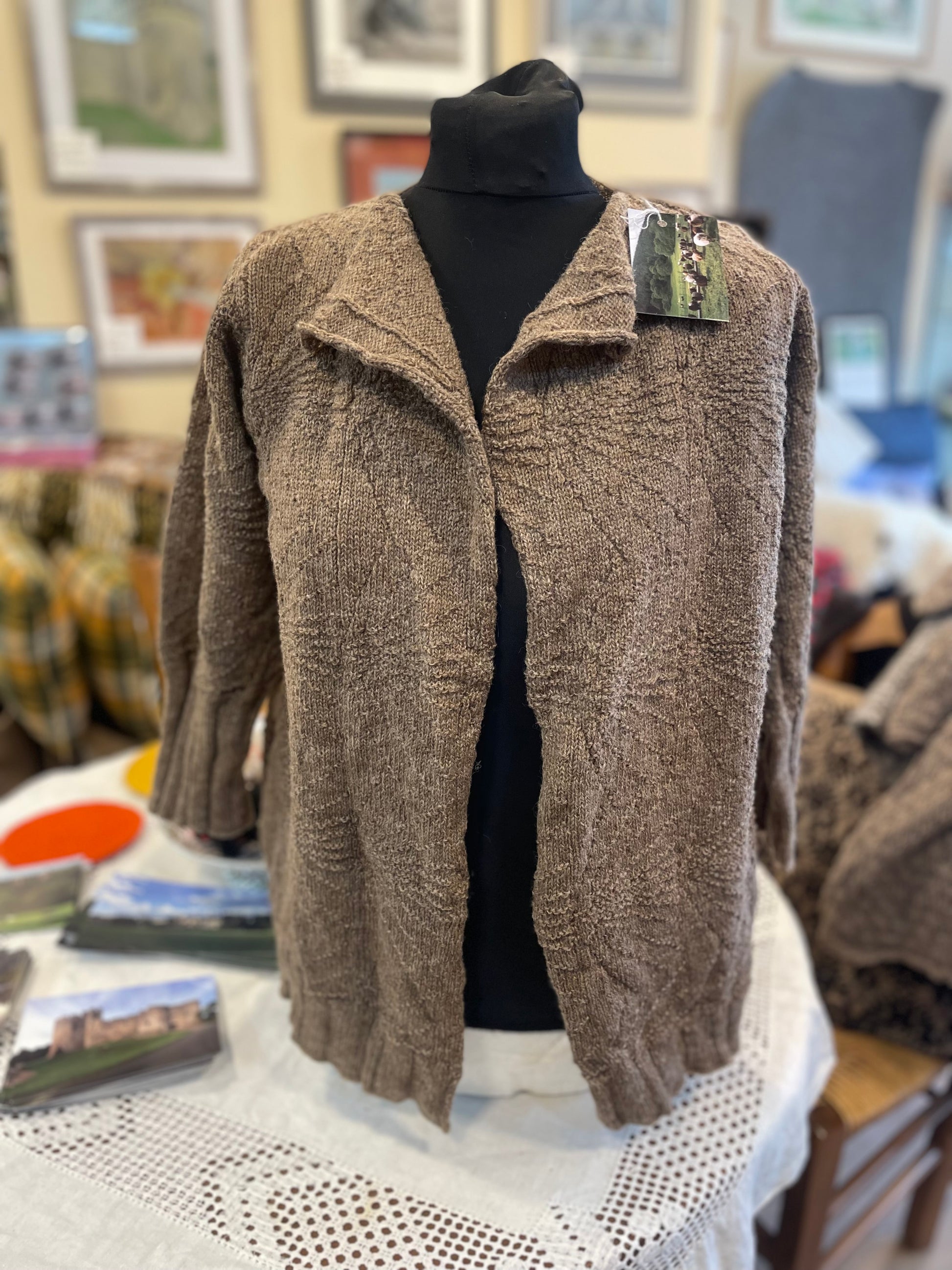 Naturally coloured 100% brown woollen Cardigan. Colours are derived from the natural fleece.