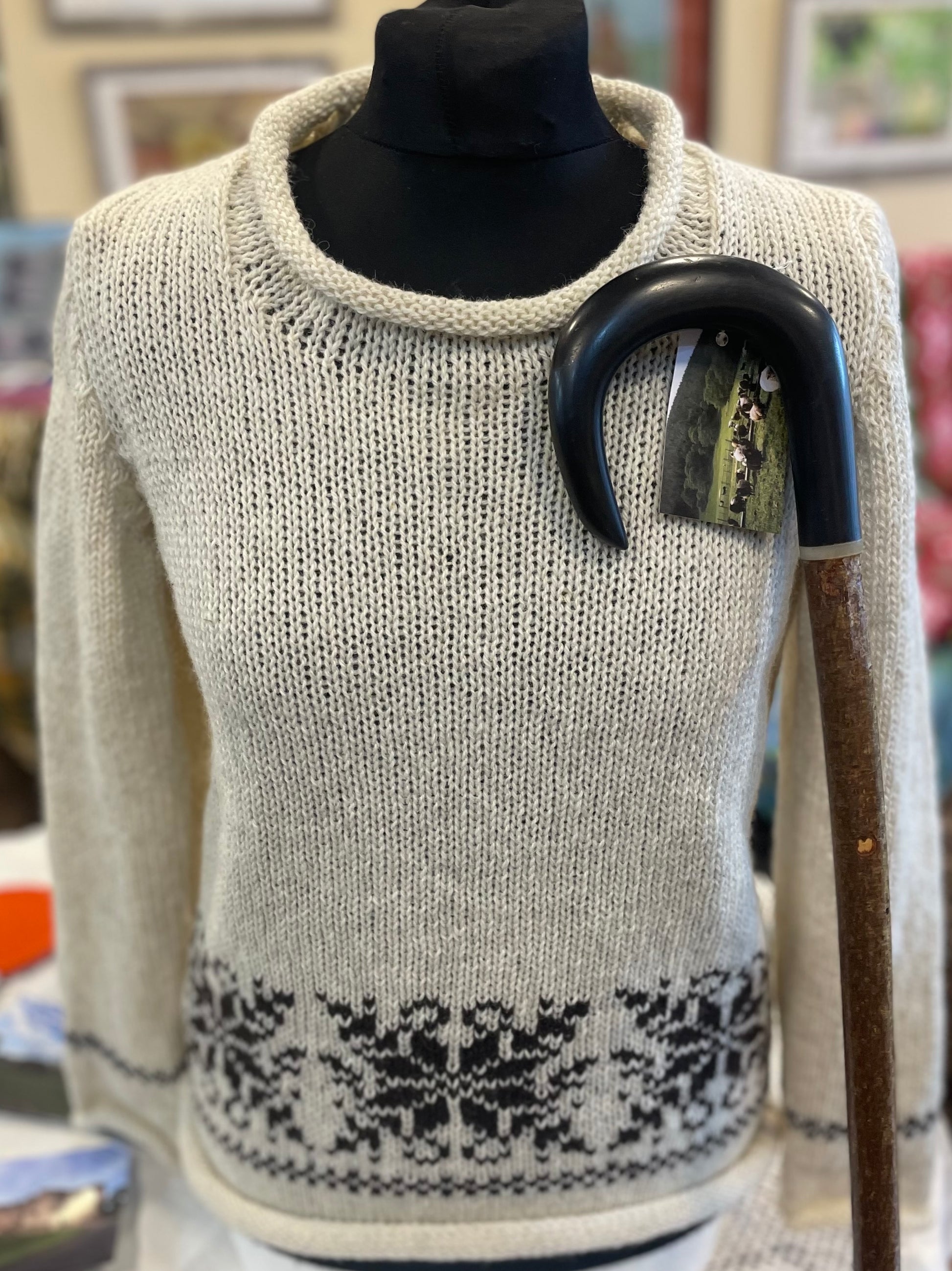 Long before she had the sheep, Lesley was a knitwear designer using a knitting machine. She now specialises in using her own wool and various products are available from the sheep as well as the knitwear.