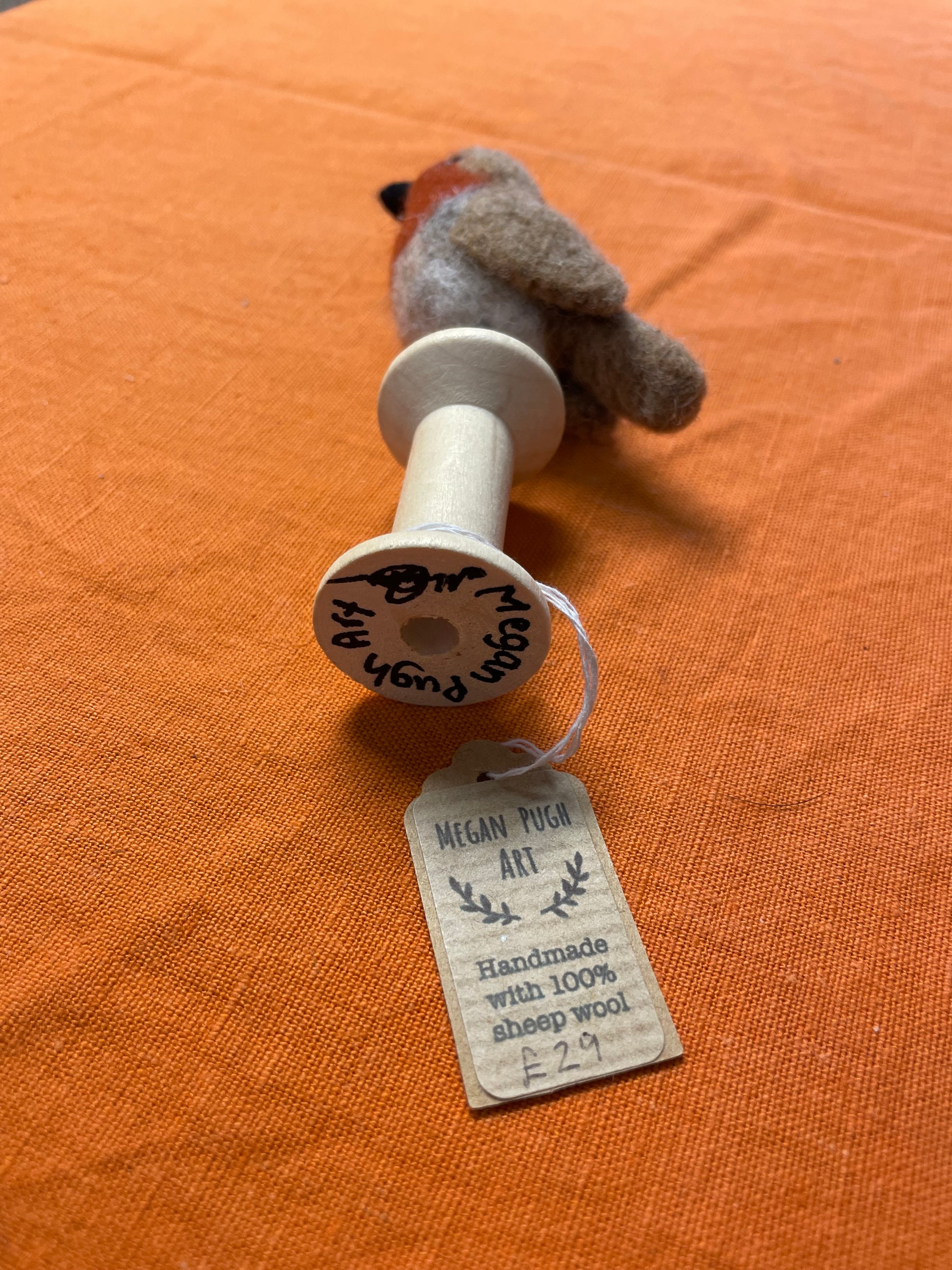 Made with 100% sheep wool, beautifully detailed Robin on cotton reel created by Megan Pugh, wildlife artist and illustrator.