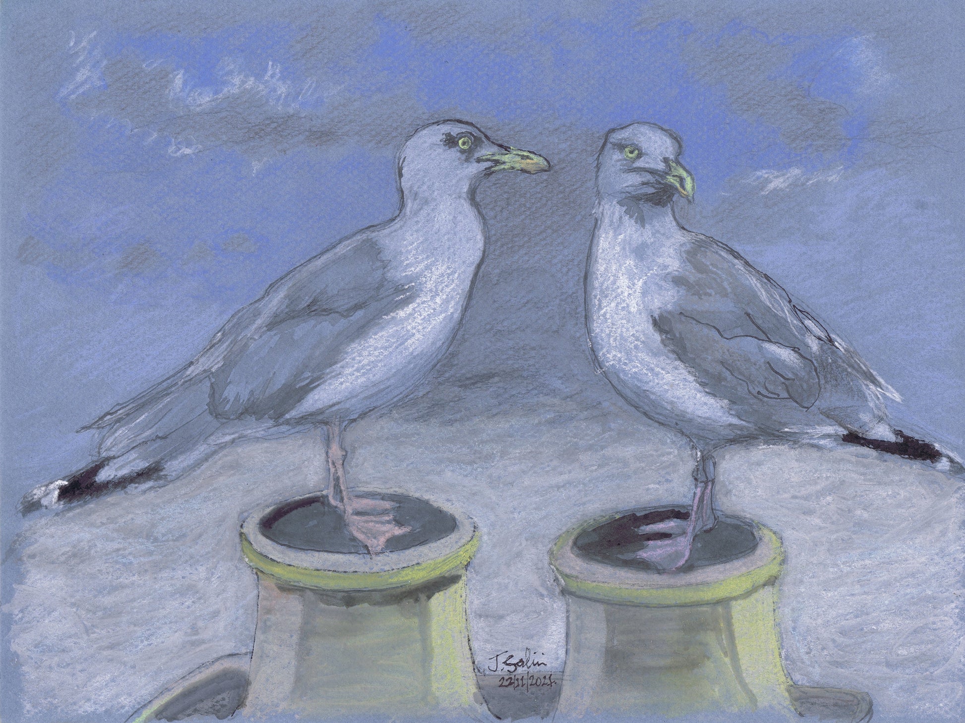 Potty Gulls: A Coastal Christmas Symphony" is more than just a painting; it's a festive celebration of local charm and the joyous spirit of the holiday season. Whether displayed as a centerpiece or shared as greeting cards, this original artwork promises to bring laughter and warmth to your space during the twelve days of Christmas.