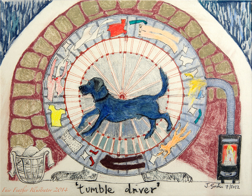 Embark on a whimsical journey with our A5 Blank Greeting Card featuring Jennifer Goslin's original painting in gouache, showcasing a dog driving a hamster wheel. This unique card captures the playful charm and creative imagination of the artwork. Share warm wishes or frame this A5 Greeting Card as a delightful keepsake, adding a touch of humor and artistry to your heartfelt messages.