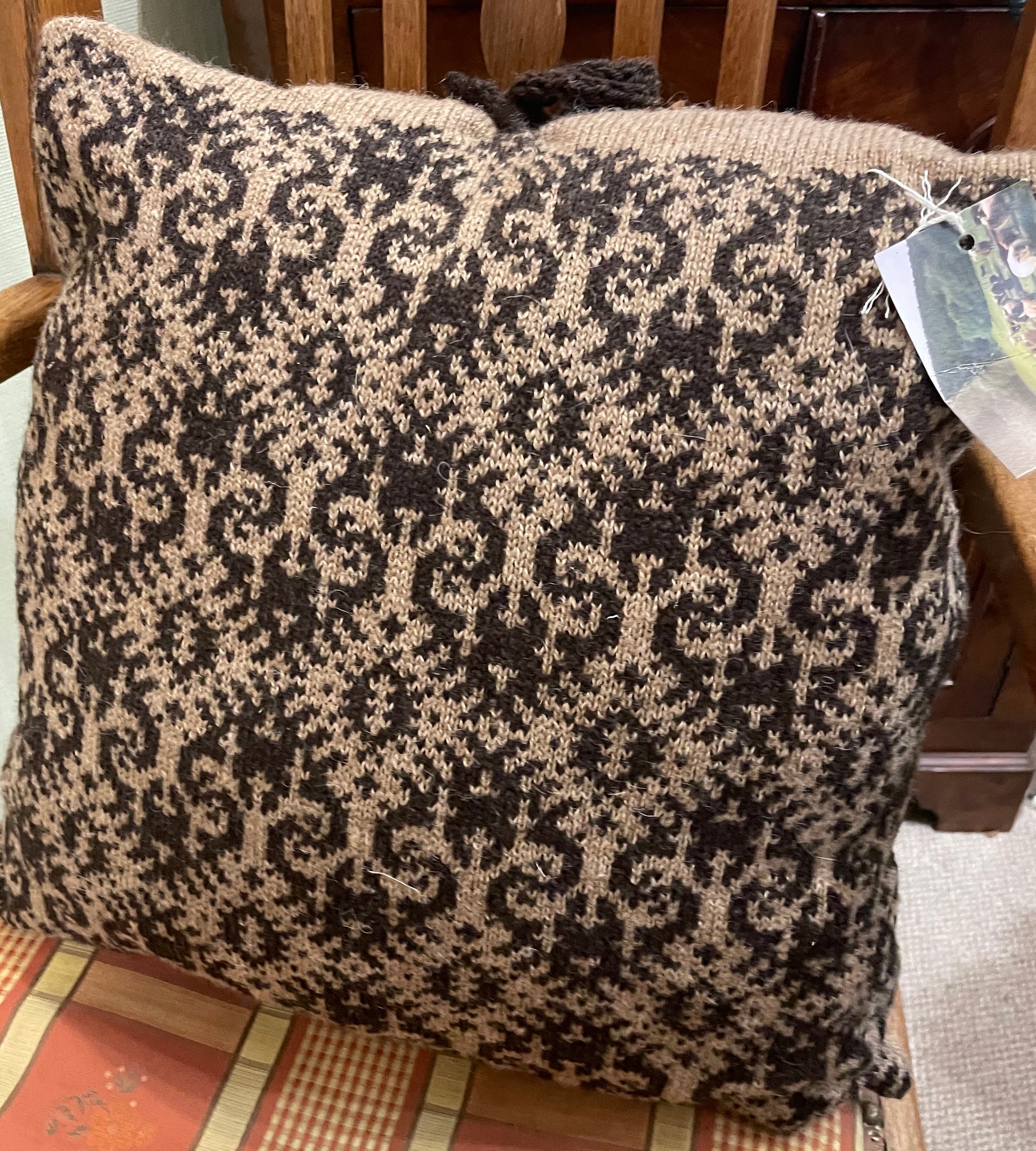 Woollen cushion designed by Lesley Wickham Cwmchwefru Wool, made with quality wool from her own sheep, carefully bred for a natural range of colours.